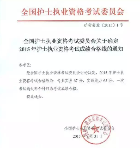 2015年护士执业资格考试成绩合格线的通知
